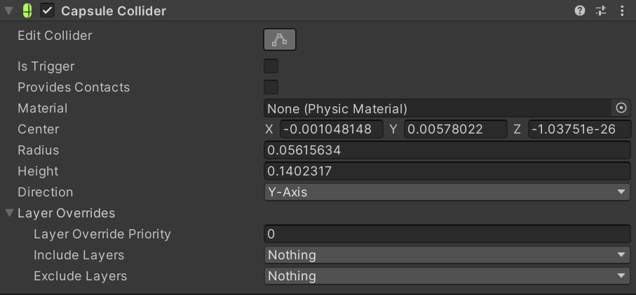 - 「Collider」内の「Is Trigger」チェックを外す。(すり抜けなくする)[必要]